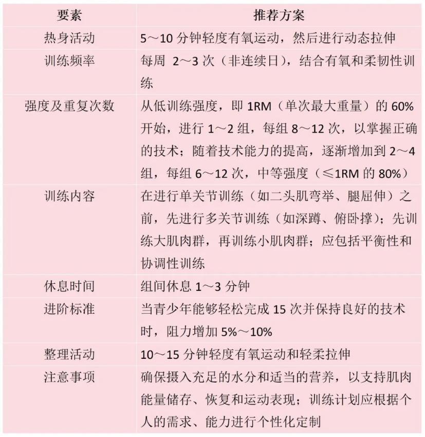 青少年的肌肉力量訓練,推薦練習以下內容: