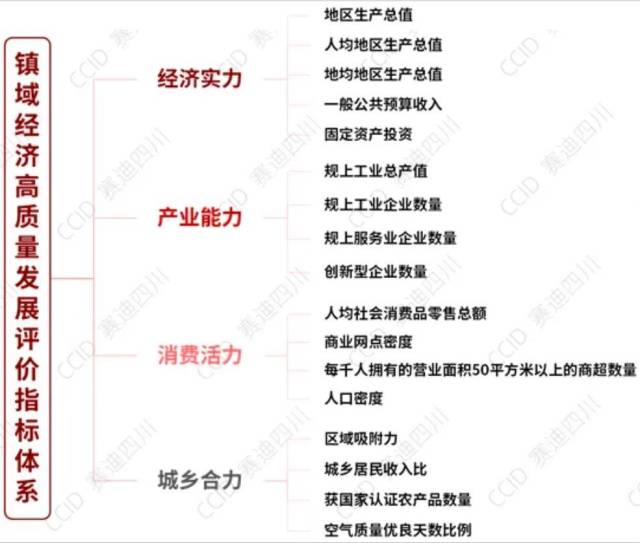 2024鎮域經濟高質量發展評價指標體系由2023年的“經濟實力、發展水平、工業水平、消費能力”調整優化為2024年的“經濟實力、產業能力、消費活力、城鄉合力”四個方面。2024鎮域經濟500強研究評價指標體系共包括4個一級指標、17個二級指標,其中,二級指標較2023年凈增加4個。此外,除上述主要指標外,本次評價也綜合考慮鎮域內上市企業數量、高等院校、省級以上創新創業載體平臺、反映鎮域經濟社會發展的榮譽稱號等支撐指標。